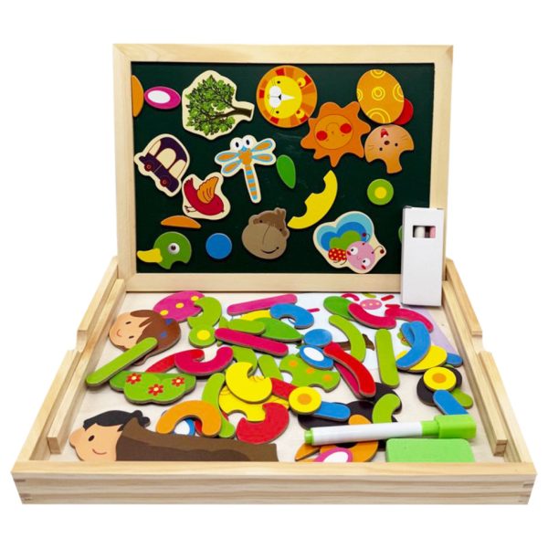 Ця двостороння магнітна дошка — справжній скарб для розвитку творчих здібностей дитини! Вона об’єднує в собі одразу дві корисні ігрові поверхні, що робить її універсальним інструментом для навчання та ігор.