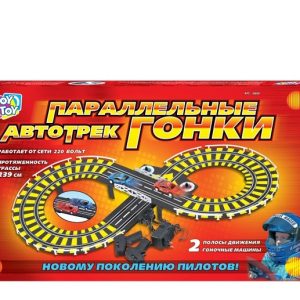Чудова гра у вигляді треку сподобається малюкові. Гра виконана у вигляді 4-х рівневого спуску. У наборі є 4 машинки, які запускаються по спуску. Також спуском можна гратися як каталкою, є колеса і мотузка. З одного боку трек оснащений шестернями, які крутяться від руху колеса. На кожній шестерні є яскраві малюнки, на кожній різні