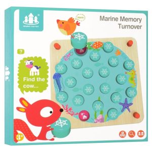 Комод складається з 4 тематичних шухлядок для сортування вкладишів за кольором, малюнком і 1 шухлядки, де знаходяться планки для вкладання. У наборі 6 планок і 30 фігур морських мешканців для сортування.