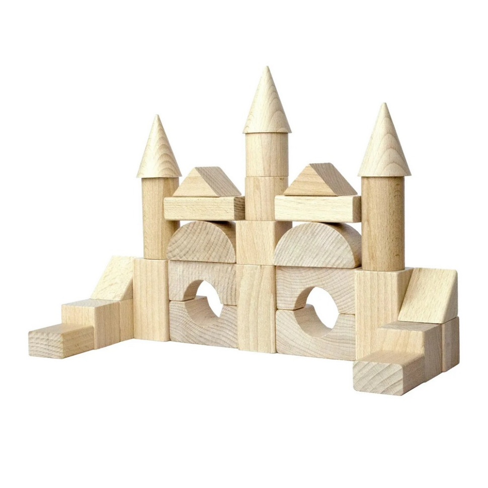 Відкрий світ будівництва разом із класичним будівельним набором з дерева! Це екологічна іграшка для дітей від 2 років, яка складається з 30 деталей різних форм: квадрати ?, прямокутники ⬛️, циліндрики ?, конуси ? та місточки ?.