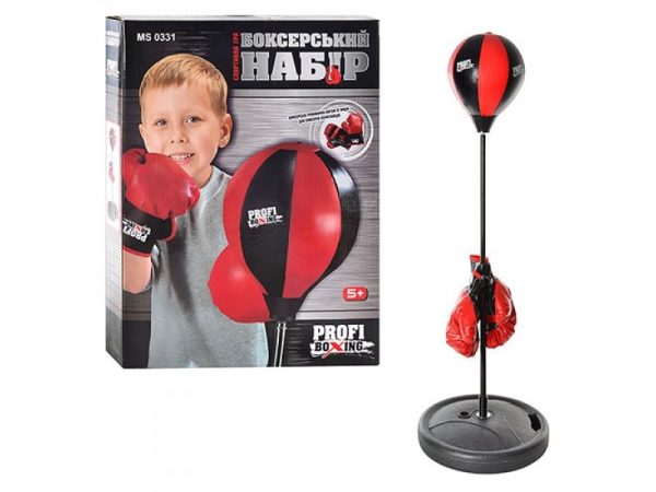 Дитячий бокс 0331 Profi Boxing дасть можливість дитині відчути себе справжнім спортсменом, який готується до поєдинку на рингу. Боксерський набір 0331 складається з груші, діаметром 20 сантиметрів, стійки, висота якої регулюється від 90 до 110 сантиметрів, і рукавичок. Для додаткової стійкості нижню підставку можна заповнити водою або піском. Розвиває спритність, координацію рухів.