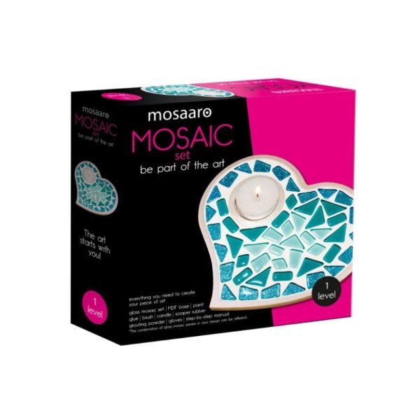 Комплектація: основа, мікс скляної мозаїки, свічка, суміш для ґрунтування, рукавички, губка, фарба, пензлик, клей, шпатель, інстукція.