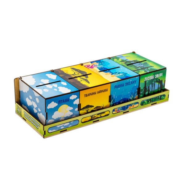 Діти в ігровій формі навчаються розрізняти мешканців різних середовищ. Сортер при виборі зображень сприяє розвитку уваги, логічного мислення, пам’яті, а при вкладанні пластин до коробочок – дрібної моторики рук та координації рухів.