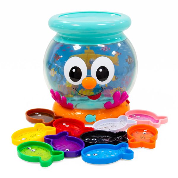 Яскравий дизайн іграшки викликає позитивні емоції та допоможе розвинути емоційний інтелект дитини: акваріум та рибки мають привітно усміхнені вирази облич.