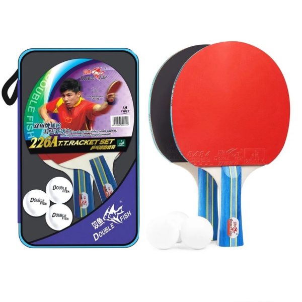 Набір для настільного тенісу (2 ракетки, 3 кульки, чохол) Double Fish NE-DF-SET- це набір для початківців і чемпіонів. Якісна 5-шарова основа і накладки TRAINER з поєднання гуми шипами всередину з губкою, що покращує відскік, надає додаткову силу удару і володіє чудовими характеристиками контролю м’яча. Зручна форма ручки дозволяє гравцеві тримати ракетку, витрачаючи на це мінімум зусиль. М’ячики 1* білого кольору. Набір простий і надійний у використанні, подарує прекрасне відчуття від рухомої та динамічної гри в настільний теніс.