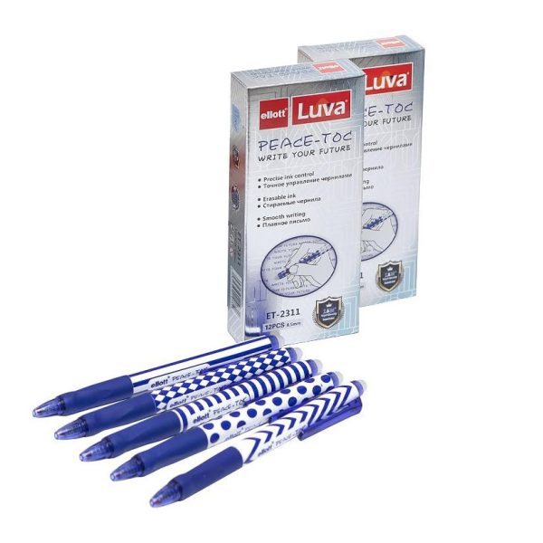 Ця автоматична ручка “Ellott” ET2311-12 має унікальну властивість – вона пише і стирає. Корпус ручки виготовлений з пластику синього кольору. Товщина лінії письма становить 0,5 мм. Продаж відбувається поштучно.