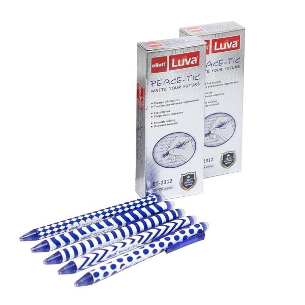 Це автоматична ручка моделі “Ellott” ET2312-12. Особливість цієї ручки – можливість стирання написаного. Колір чорнила – синій.