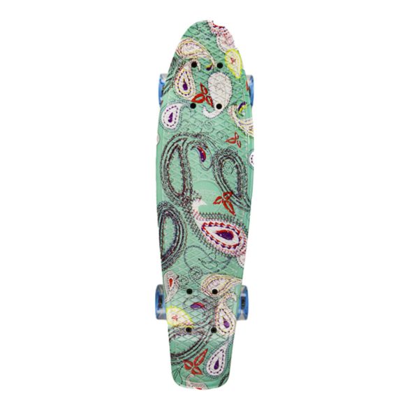 Ця дошка є ідеальним вибором для тих, хто хоче швидко та зручно переміщуватись по місту або кататись у скейт-парку. Колеса з поліуретану забезпечують гладкий хід та добре тримають дорогу, а світловий ефект додає додаткової яскравості і стилю.