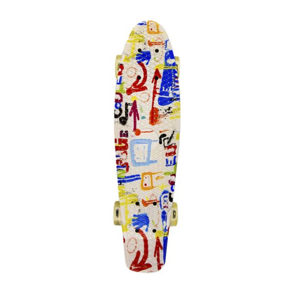 Пенні борд з колесами, що світяться – це легкий і компактний скейтборд, який відрізняється яскравим та веселим дизайном. Цей скейтборд має невеликий розмір та вагу, що робить його ідеальним для коротких поїздок по місту або круїзів на березі моря.