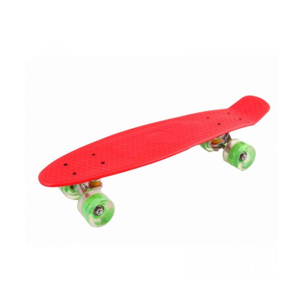 Пенні Борд. Легка дека зроблена з міцного формованого пластика. Довжина деки – 55 см., Ширина – 15 см. Принт завдано на деку з одного боку. Колеса PU, d = 6 см. Максимальне навантаження 70 кг. Колеса зі світлом