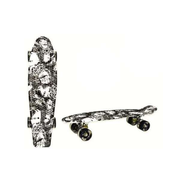 Пенні Борд. Легка дека зроблена з міцного формованого пластика. Довжина деки – 55 см., Ширина – 15 см. Принт завдано на деку з одного боку. Колеса PU, d = 6 см. Максимальне навантаження 70 кг. Колеса зі світлом