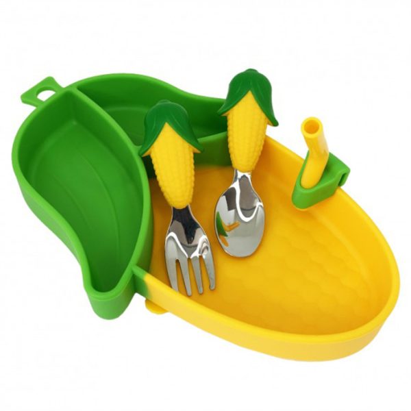 Силіконова секційна тарілка “Кукурудза” не тільки виглядає неймовірно яскраво та казково, а й закриває всі потреби малюка, що вчитиметься самостійно.